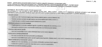Proiect – „Sprijin pentru persoanele defavorizate în vederea asigurării alimentelor de bază/mese calde”, cod proiect MySMIS 336239