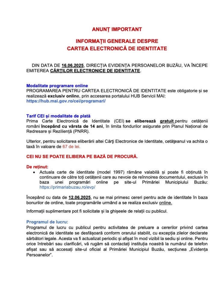 Anunț Important – Informații Generale despre Cartea Electronică de Identitate